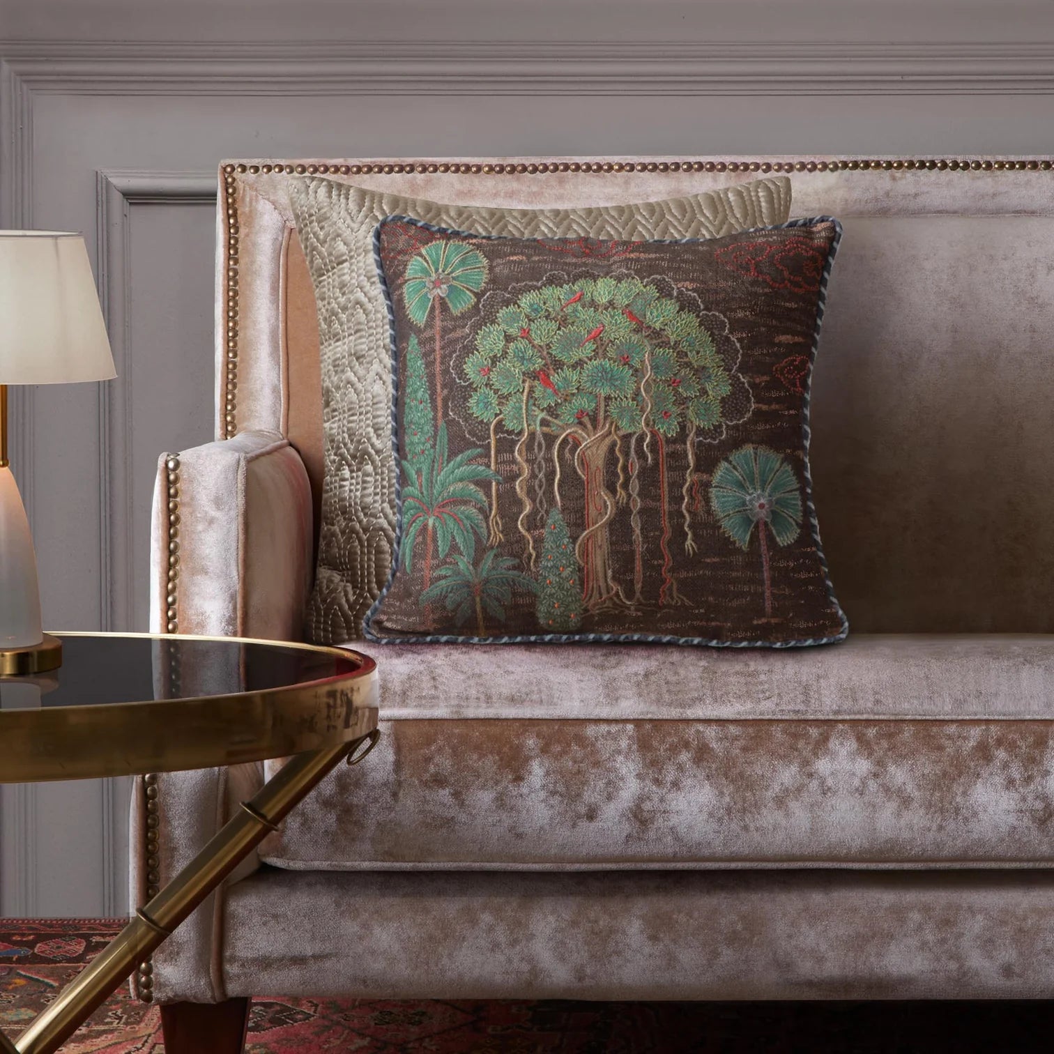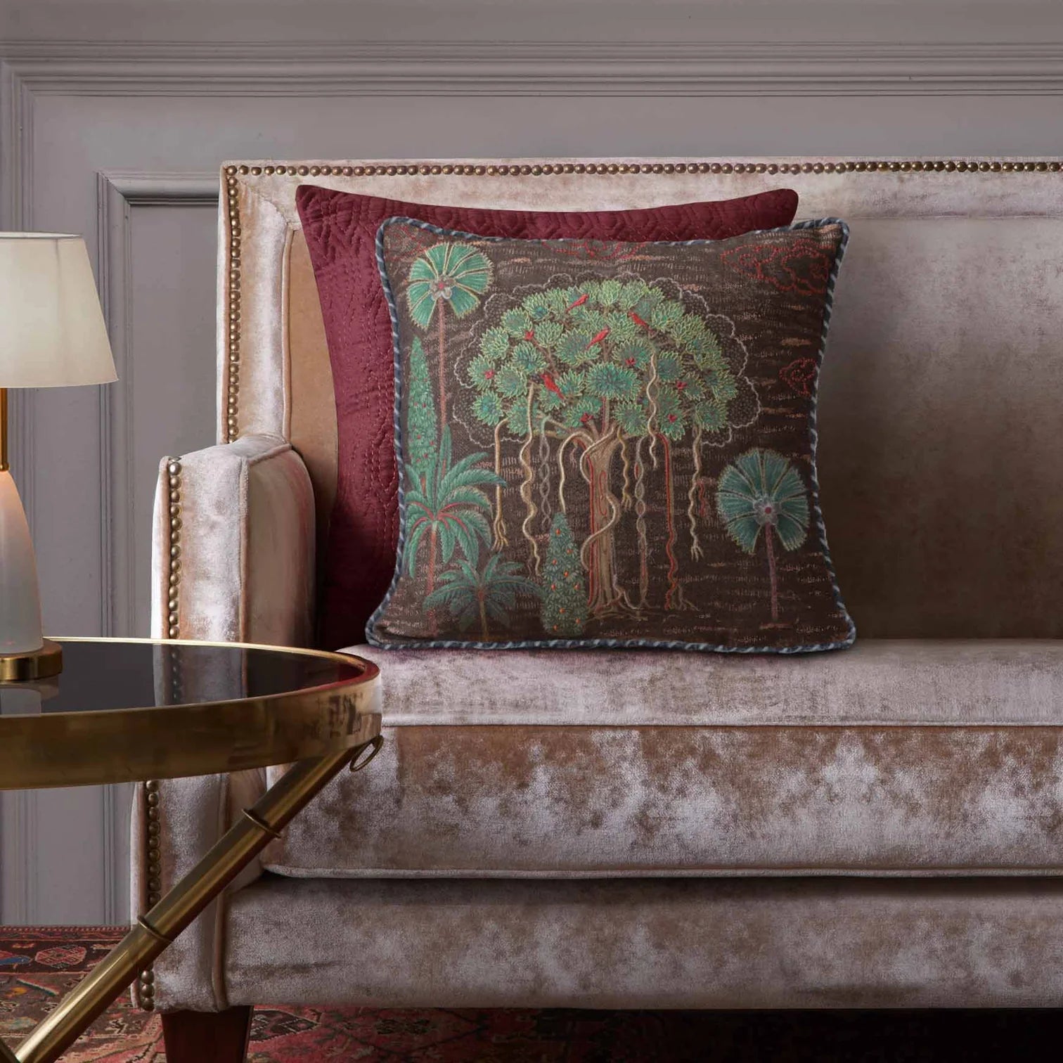 Banyan Tree Embellished Cushion Cover - Brown