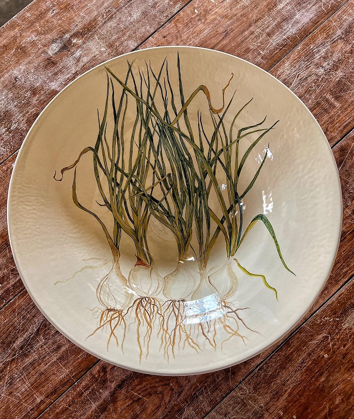Hand-painted botanical serving bowl inspired by vegetable used prolifically in Indian cuisine, and whose strange shape and texture is extremely beguiling.