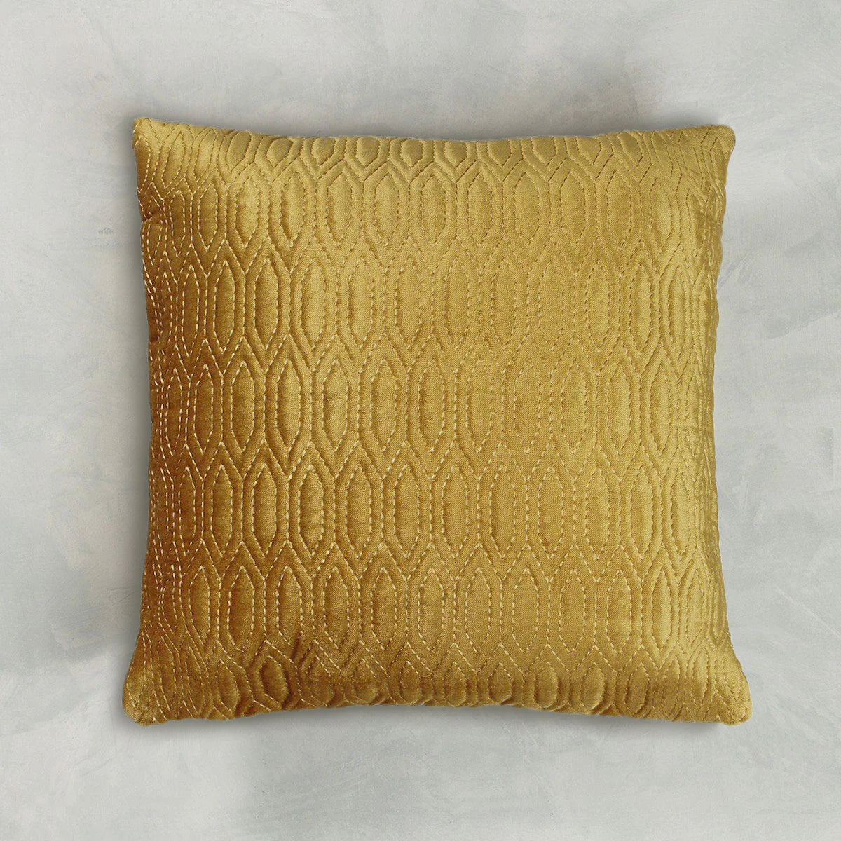 A superbly plush velvet cushion in hues of golden green Chartreuse, with a finely detailed lattice embroidered on it, makes this a versatile and rich accompaniment to our printed cushions.