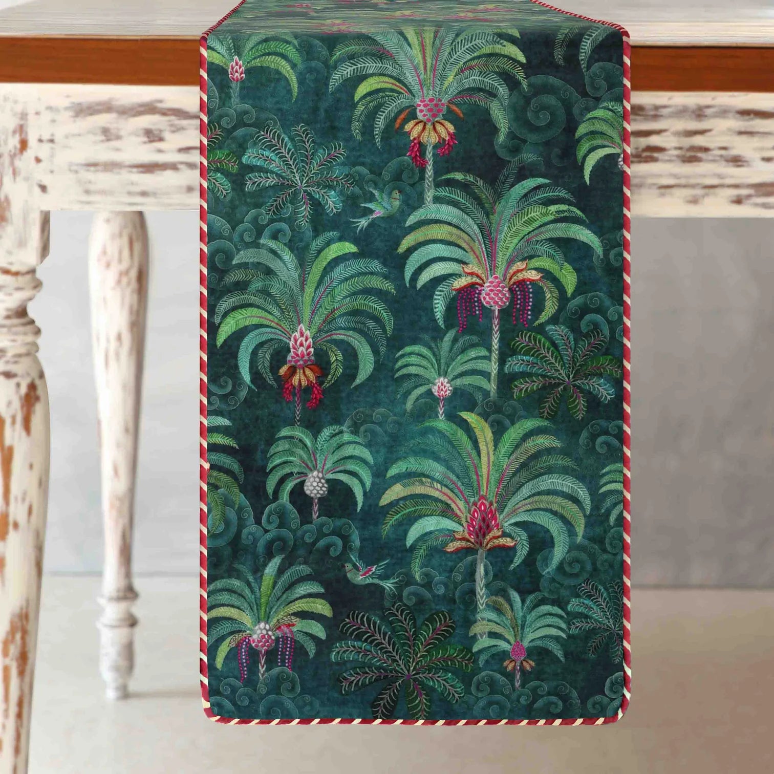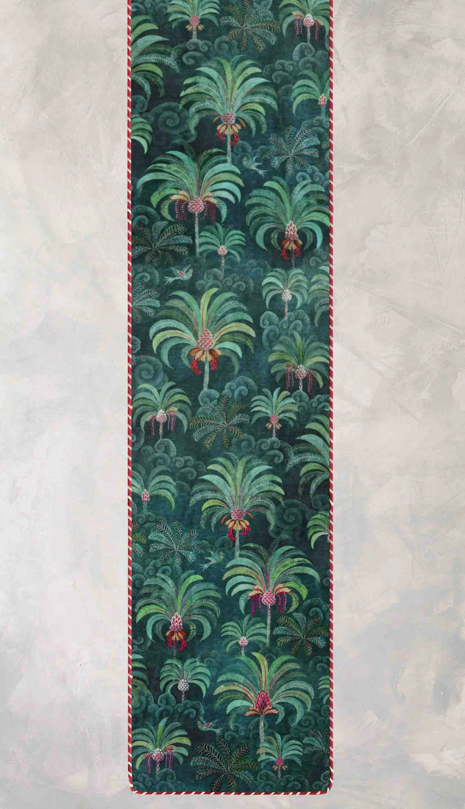 An enchanted grove of palm trees and clouds inspired by the majestic Coromandel coast. Printed on fine matte velvet, this stylish yet easy to maintain runner can be home washed and makes a great gift as well. Pair with our palm table mats for a stunning table setting.